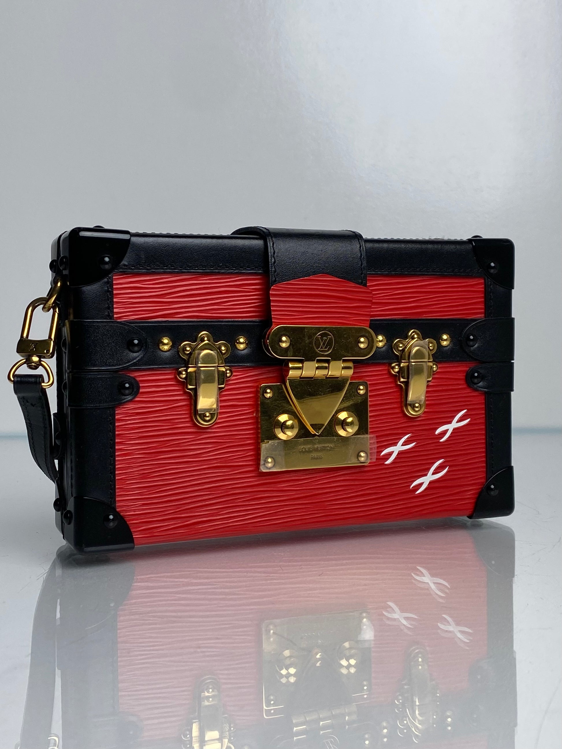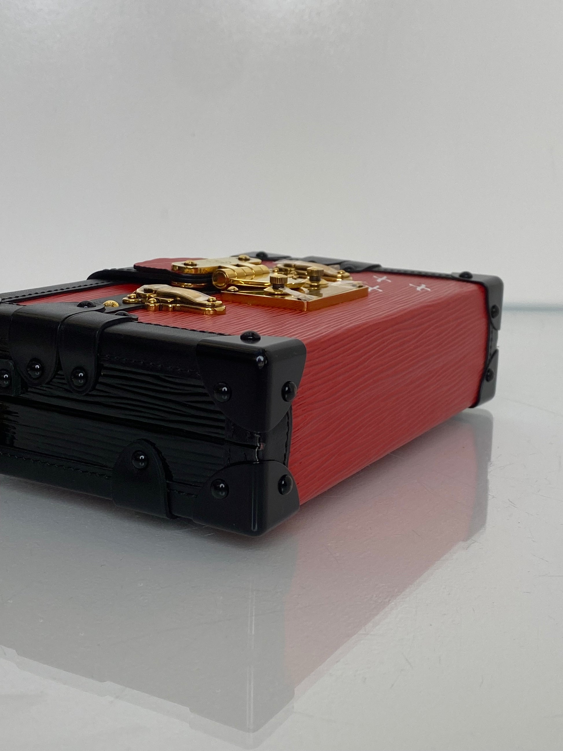 Louis Vuitton Red Epi and Black Petite Malle Trunk Crossbody Bag GHW