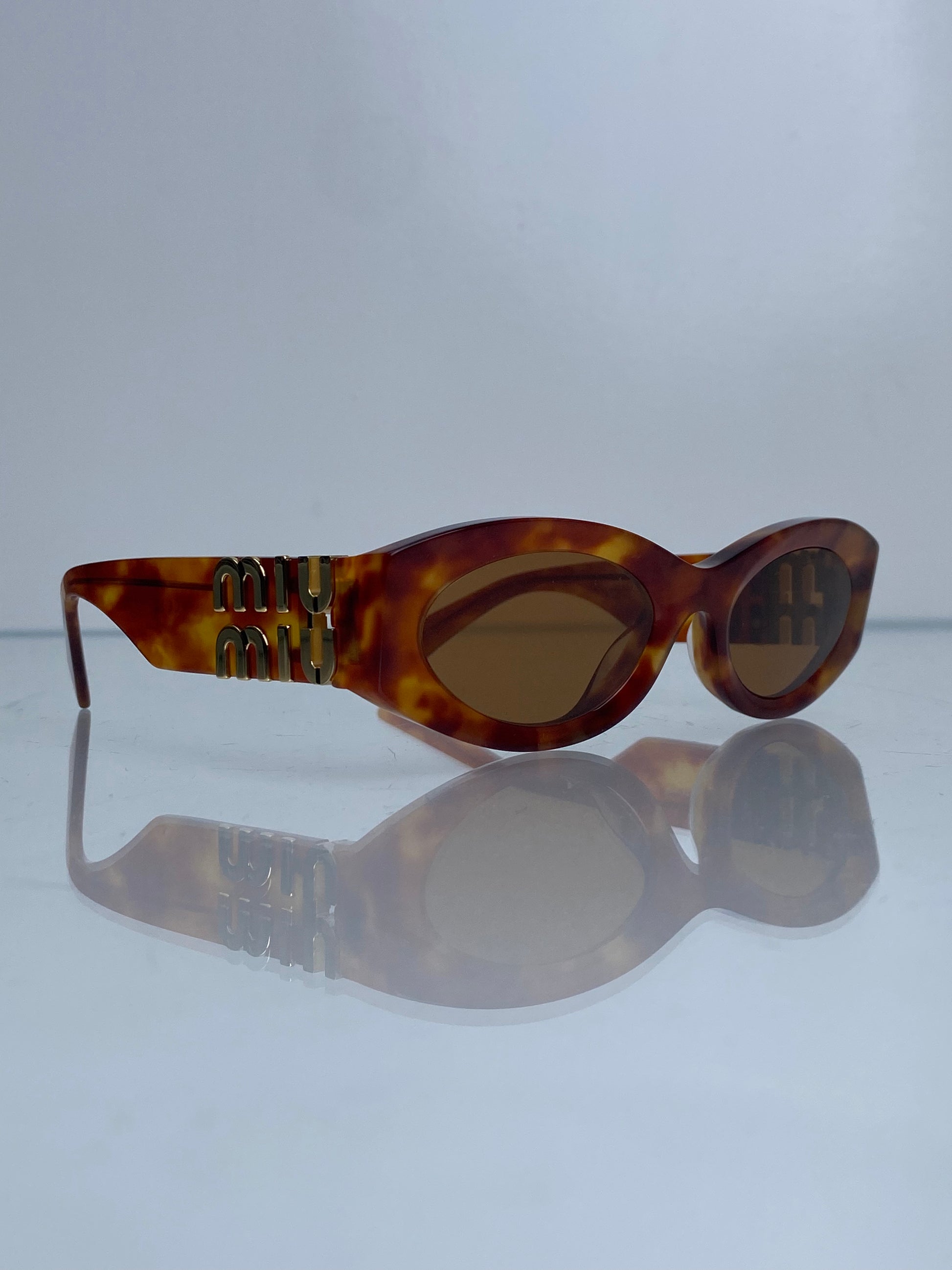 Miu Miu Brown Tortoise Gold Logo Sunglasses