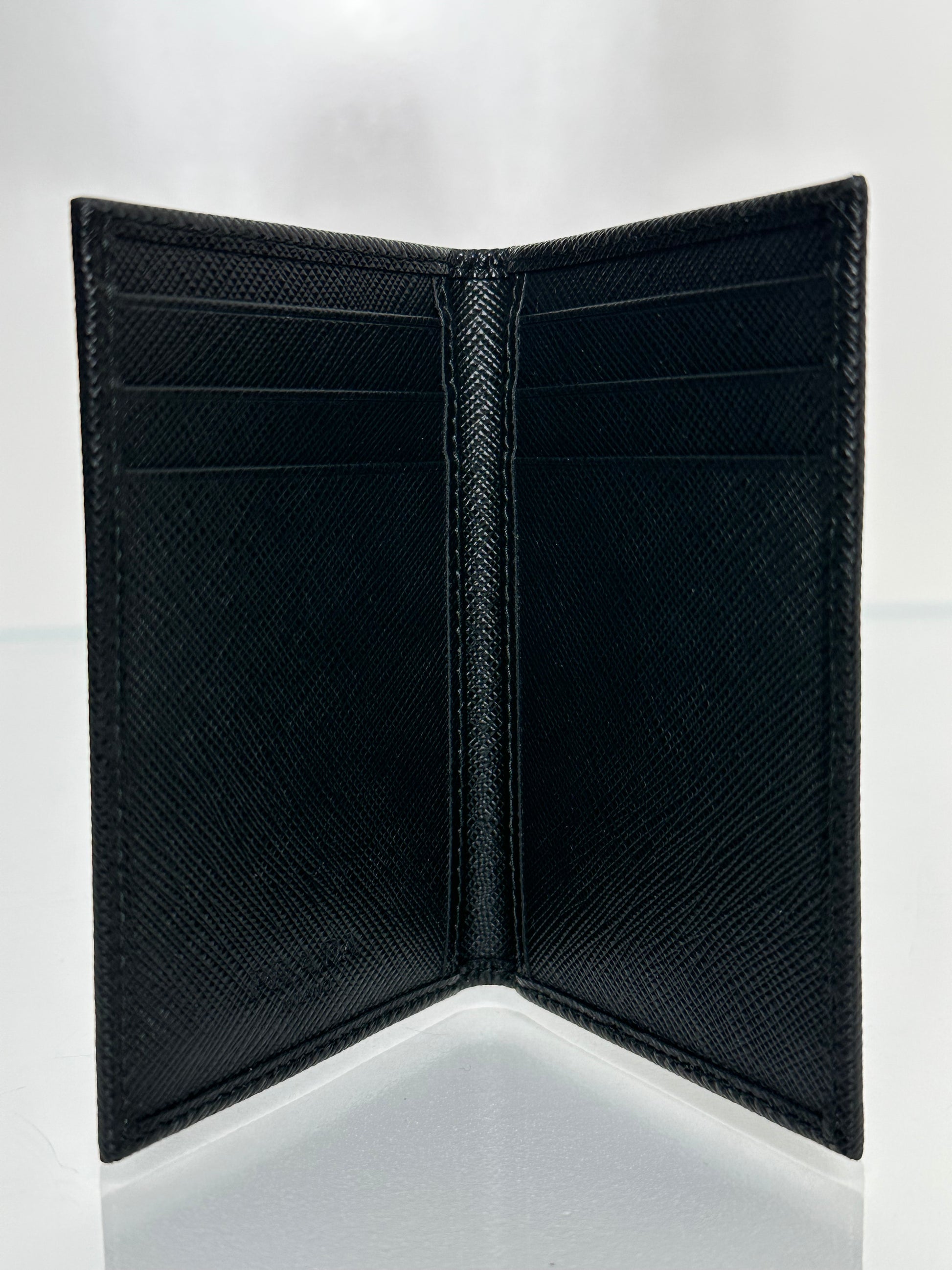 Prada Black Saffiano Slim Bifold Cardholder SHW