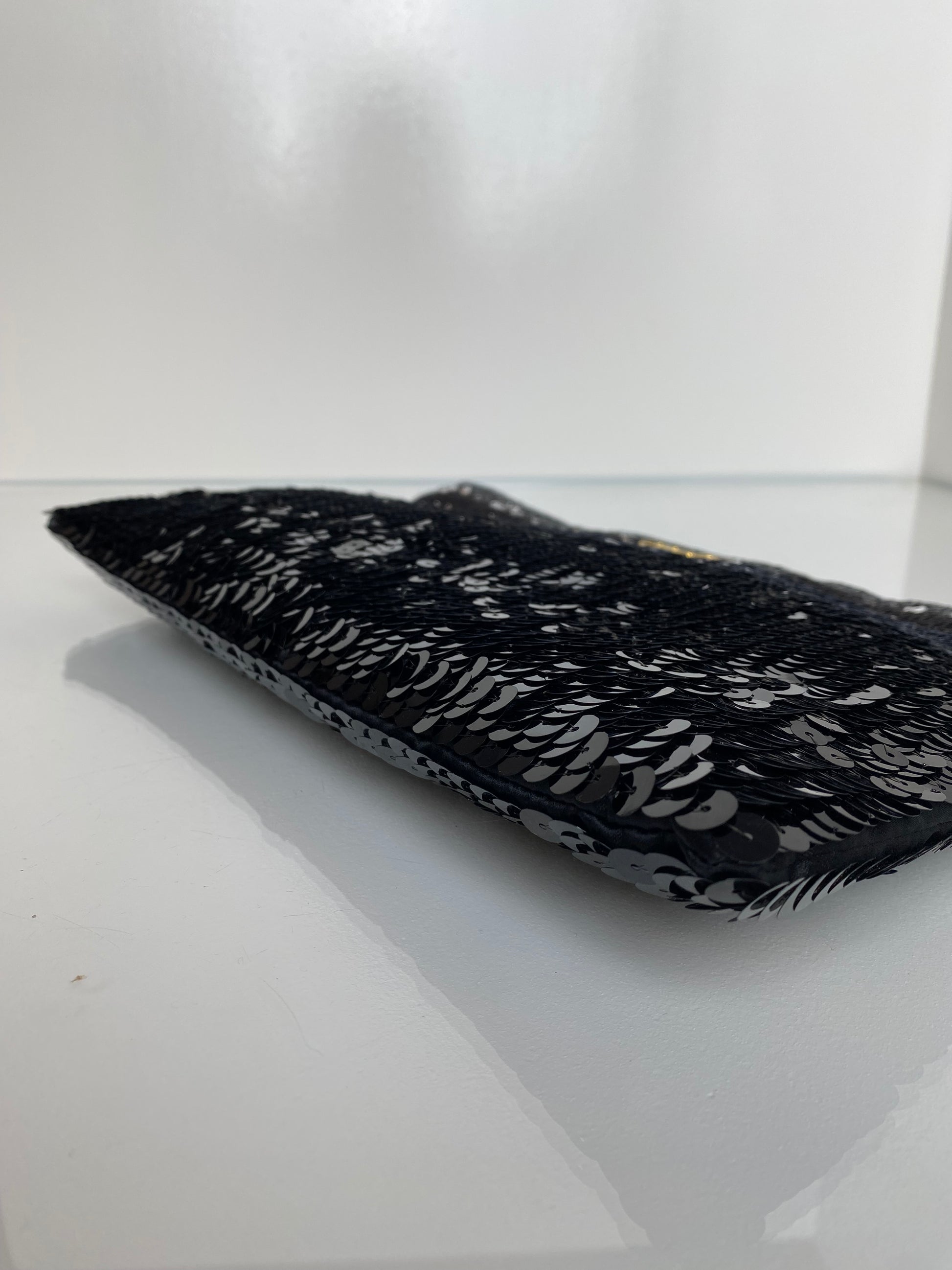 Prada Black & Silver Ombré Sequin Clutch GHW