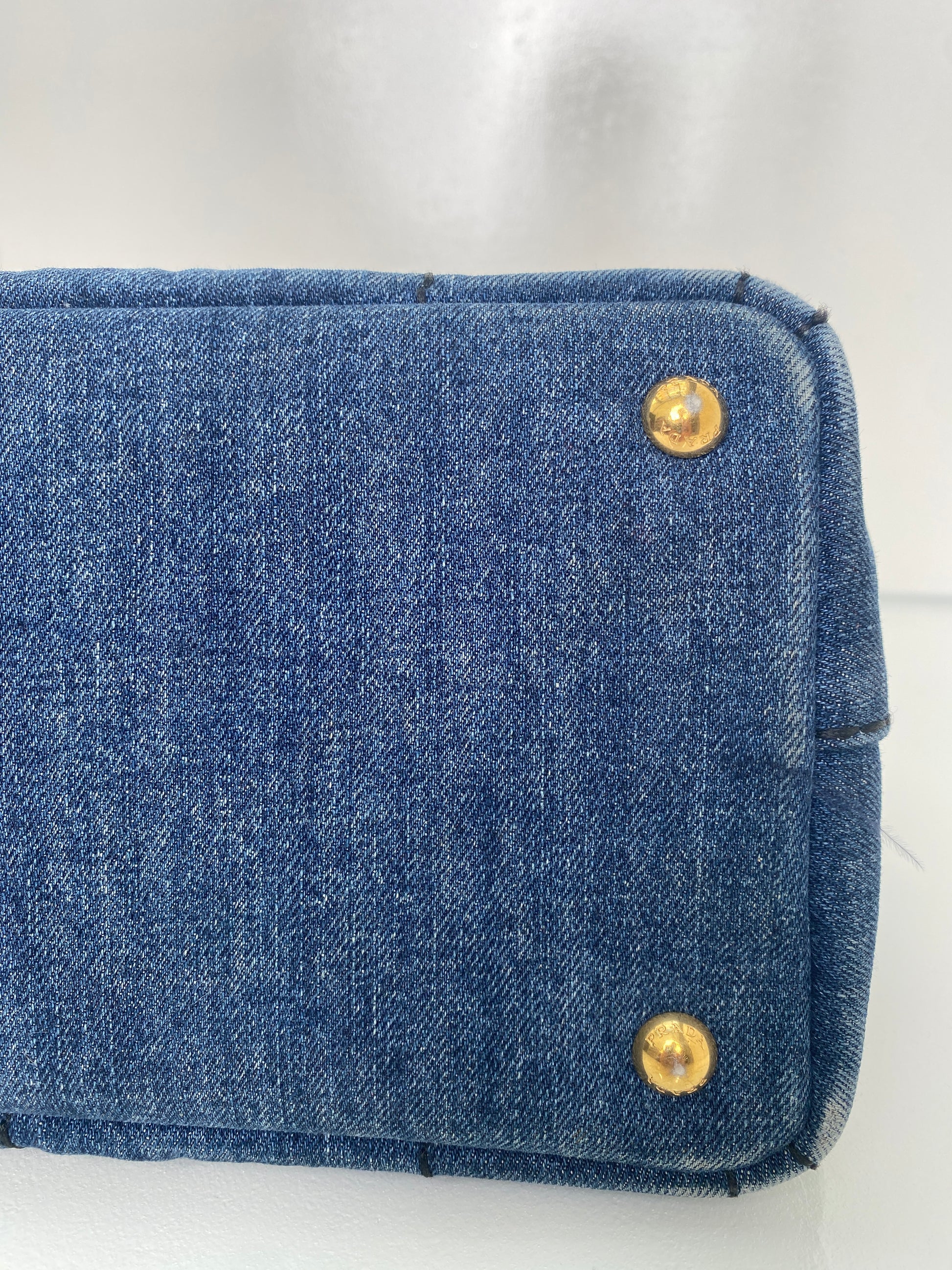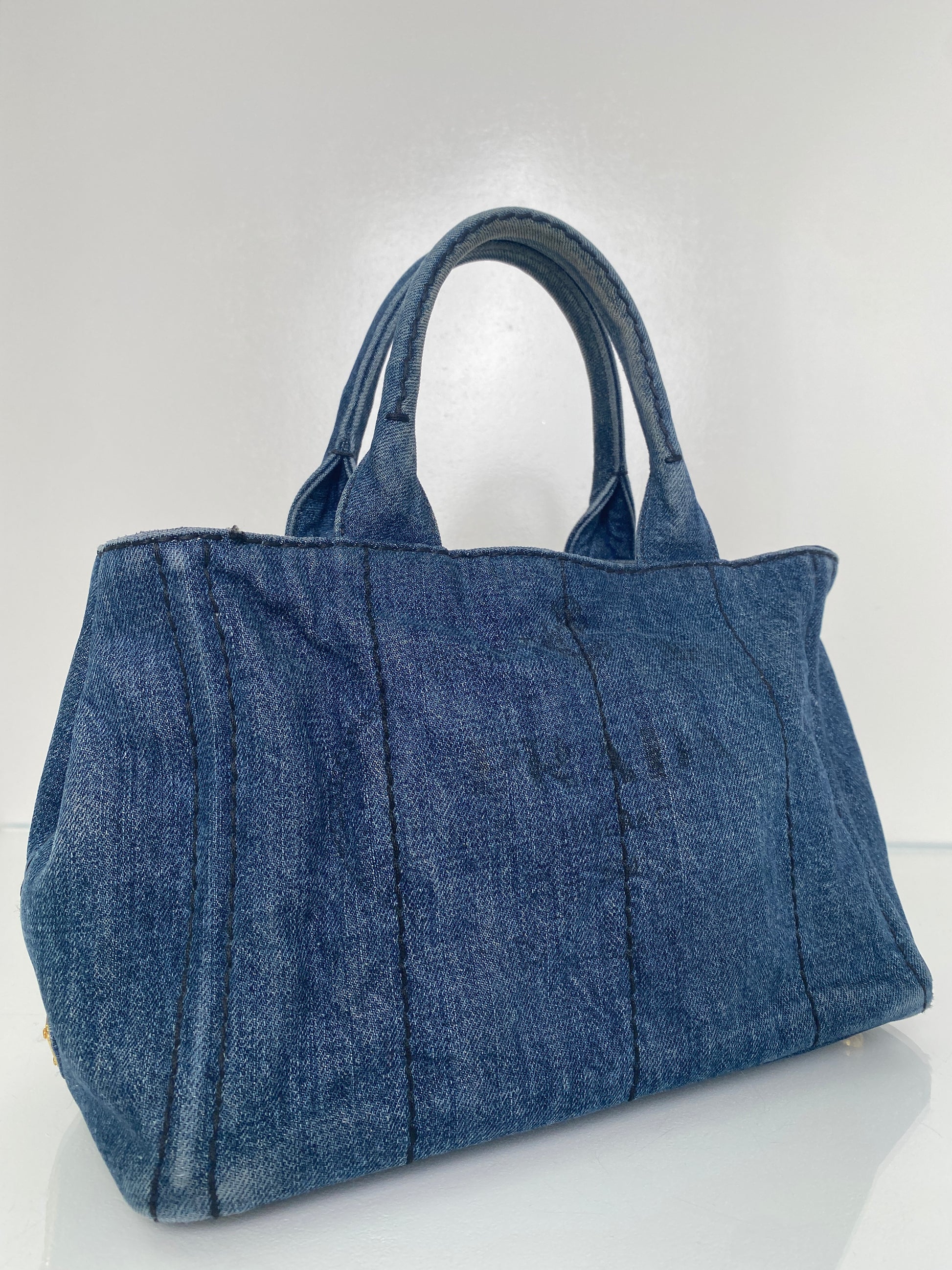 Prada Blue Denim Canapa Tote Bag GHW (As Is)
