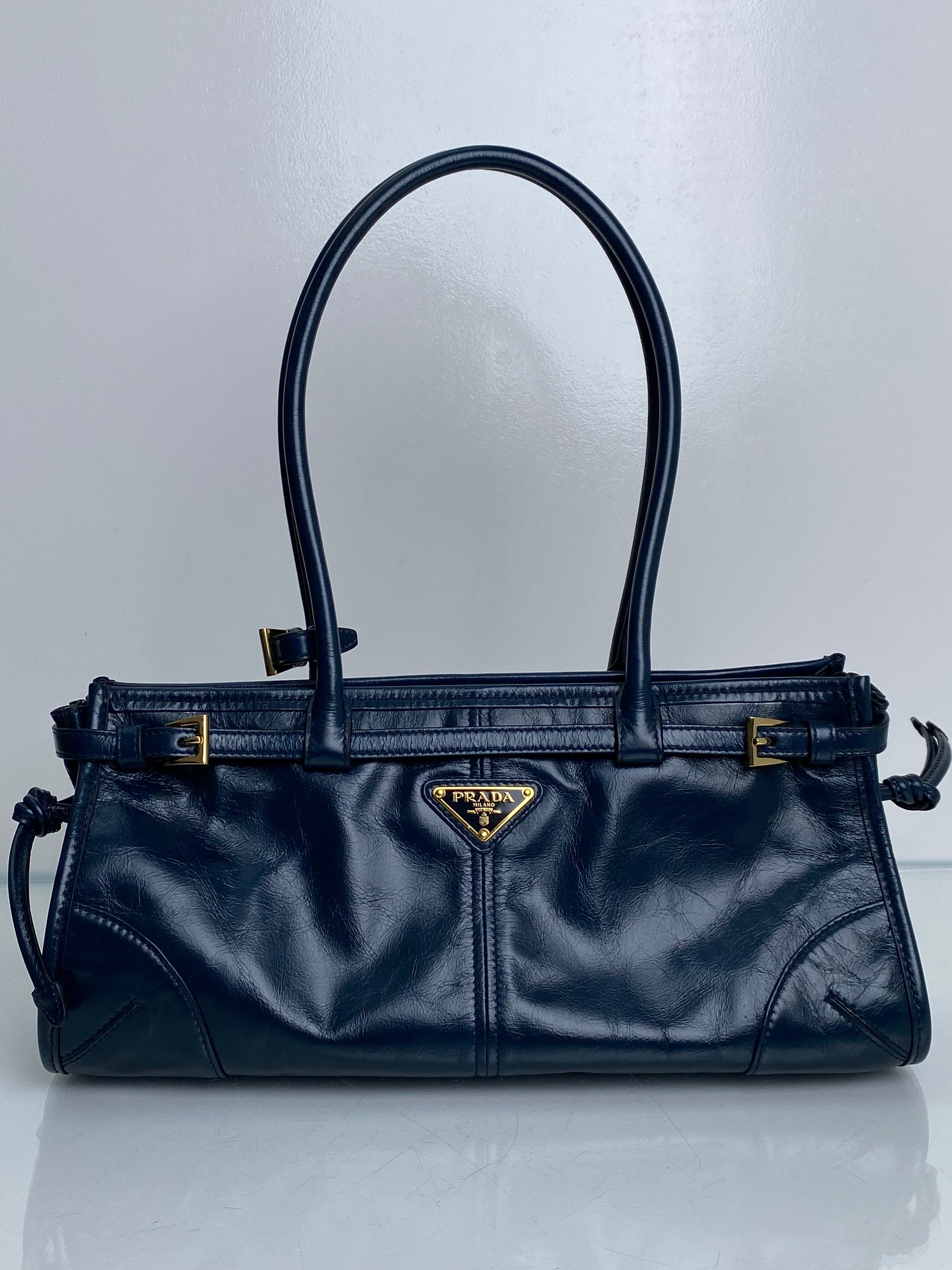Prada Teal Bonnie Leather Shoulder Bag GHW