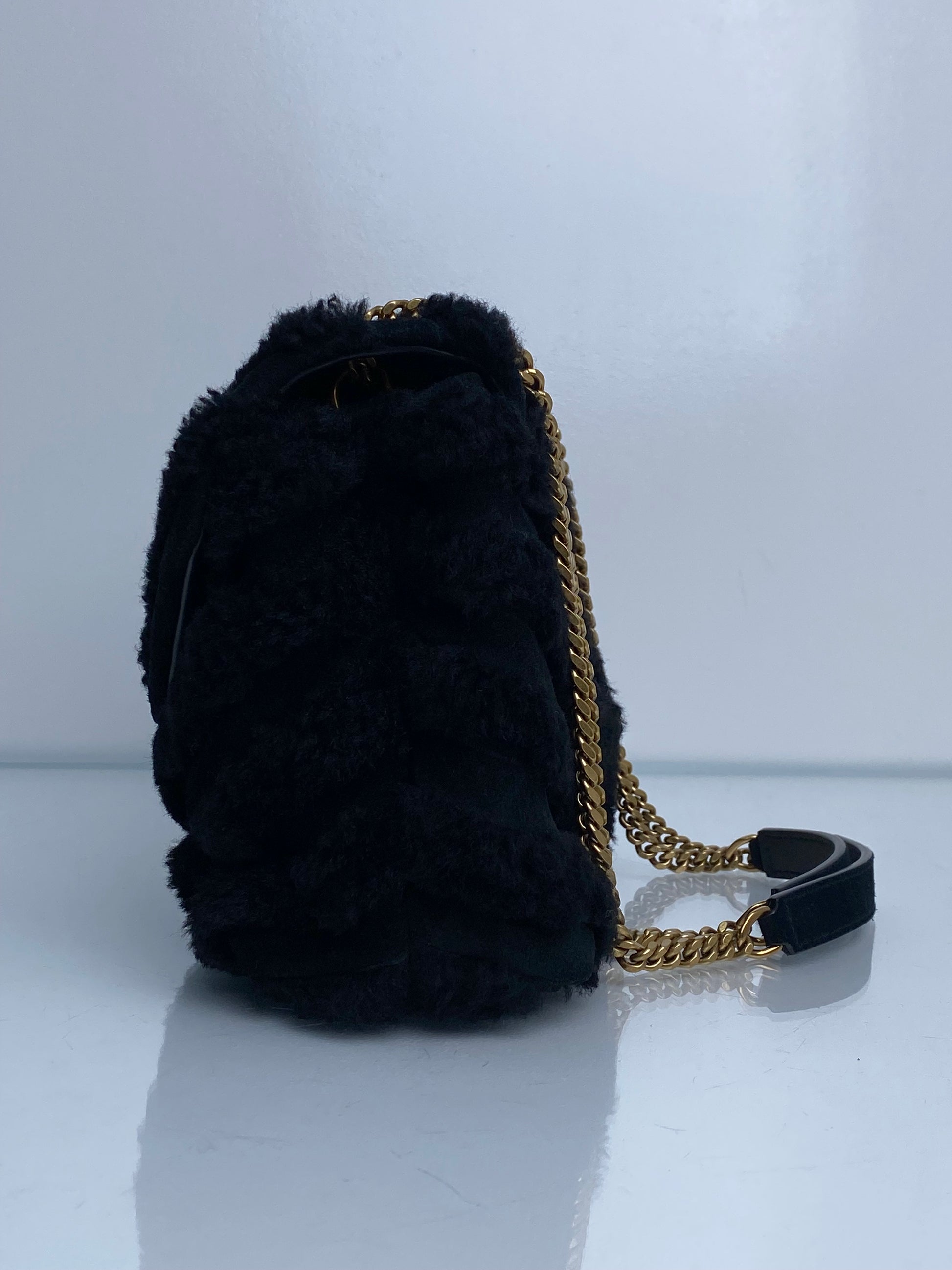 Saint Laurent Black Suede/Shearling Lou Lou Small Bag GHW