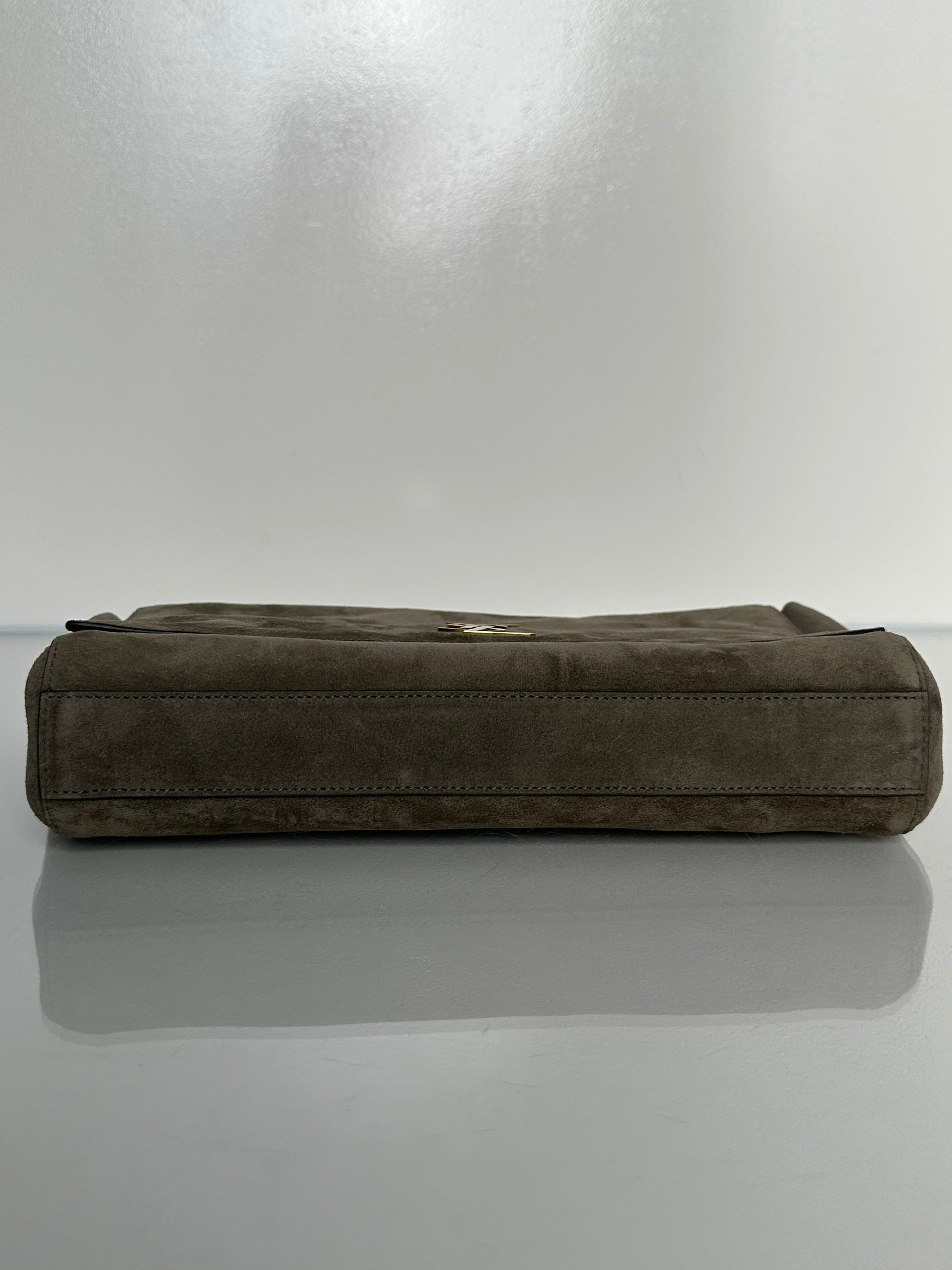 Saint Laurent Grey / Taupe Suede Reversible Kate Bag GHW
