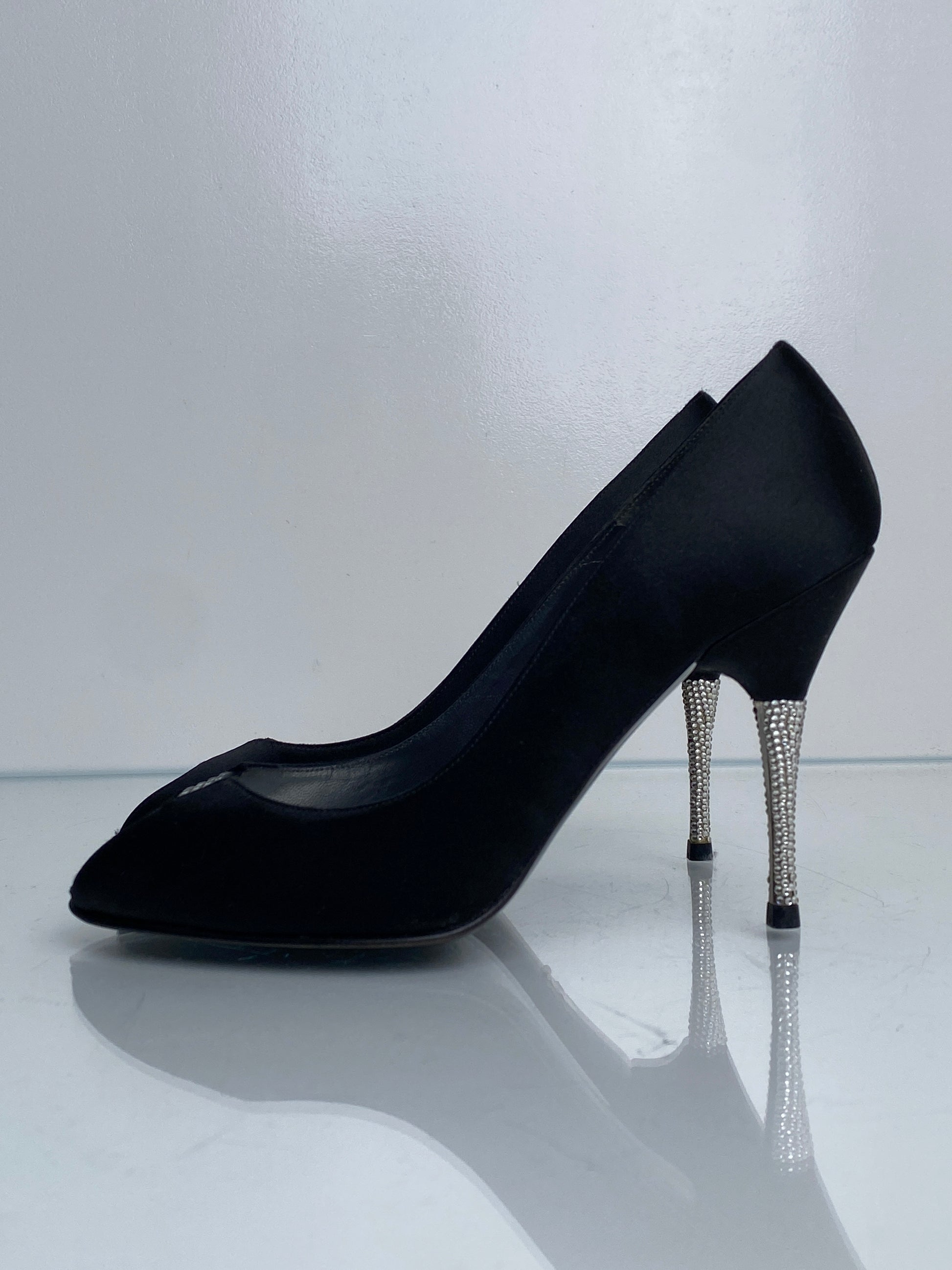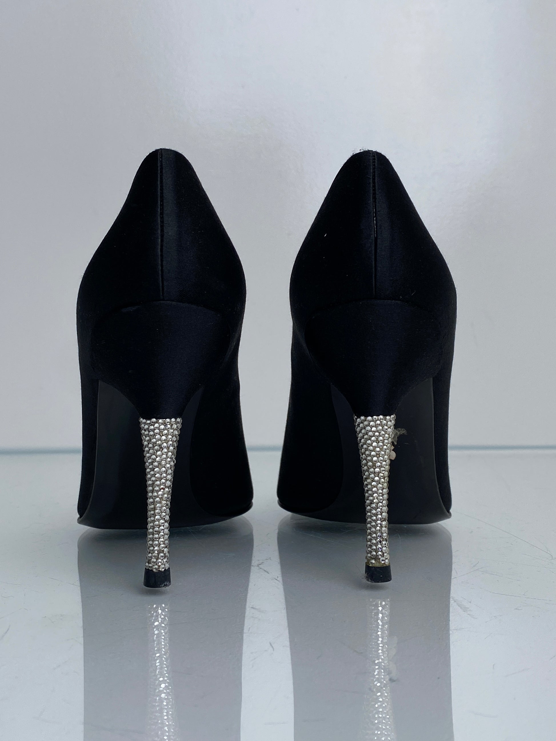 Stuart Weitzman Vintage Black Satin & Rhinestone Heels, 8.5