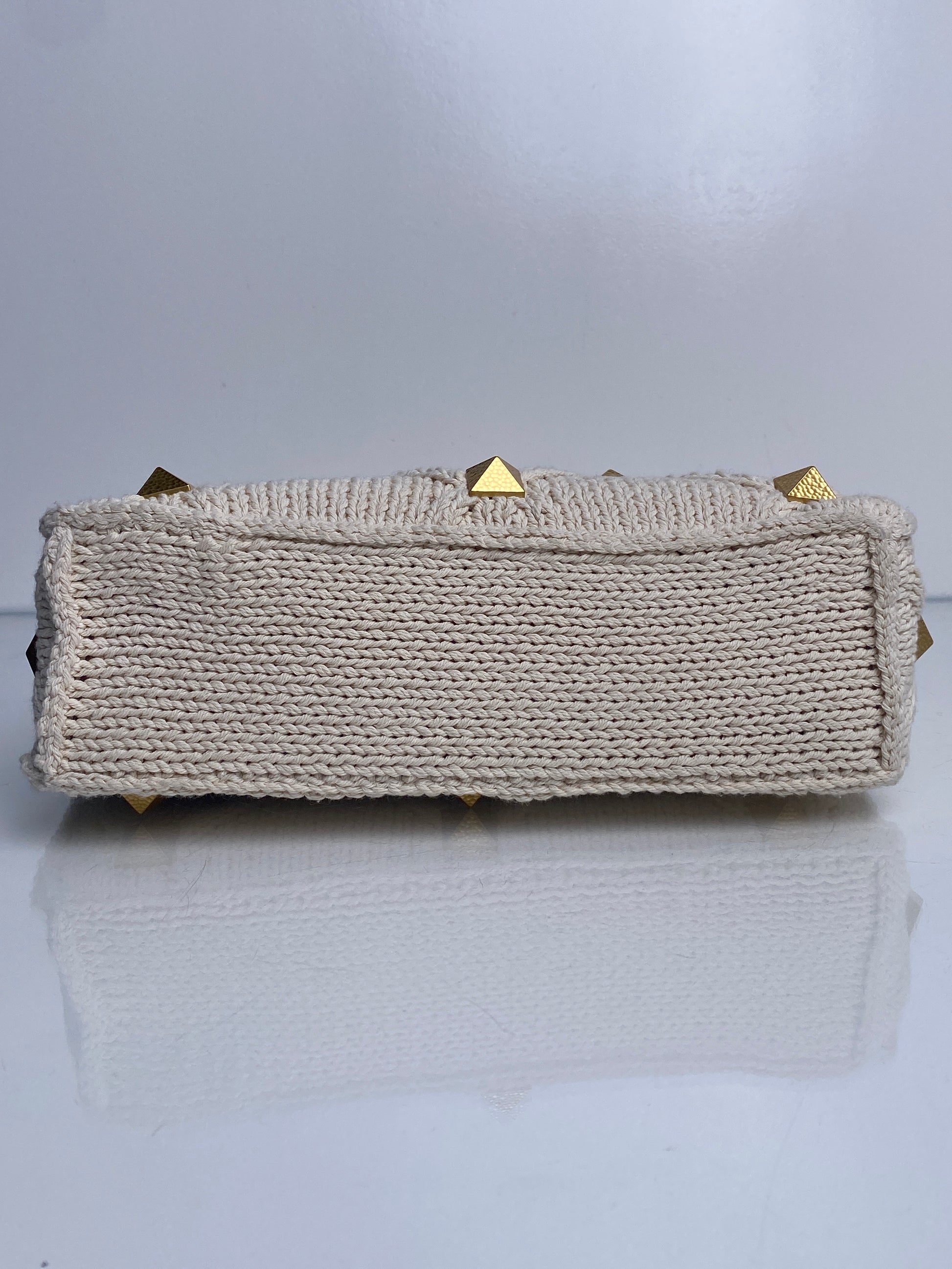 Valentino Cream Knit Roman Stud Medium Bag GHW